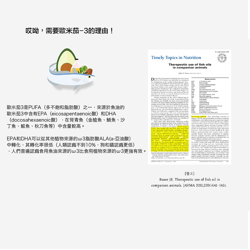● 富含歐米茄-3 、維生素B 、牛磺酸 、鈣 、必須胺基酸。
