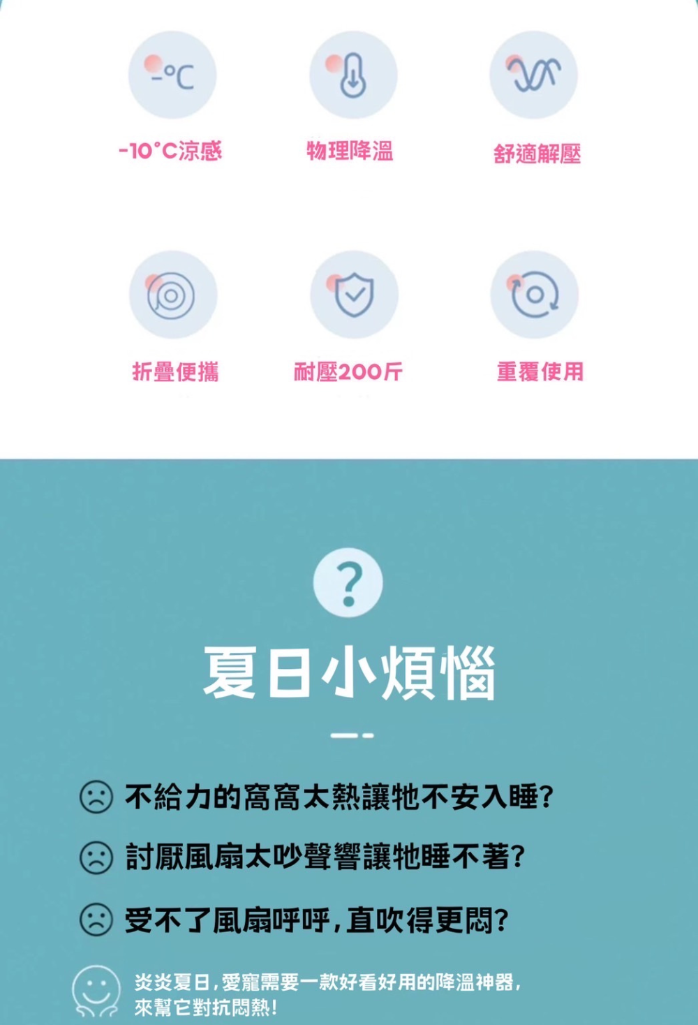 摸到會驚豔的涼感墊,冰冰涼涼的很舒服,外出時放在寵物推車裡也可以有效幫助汪星人及喵星人降溫。