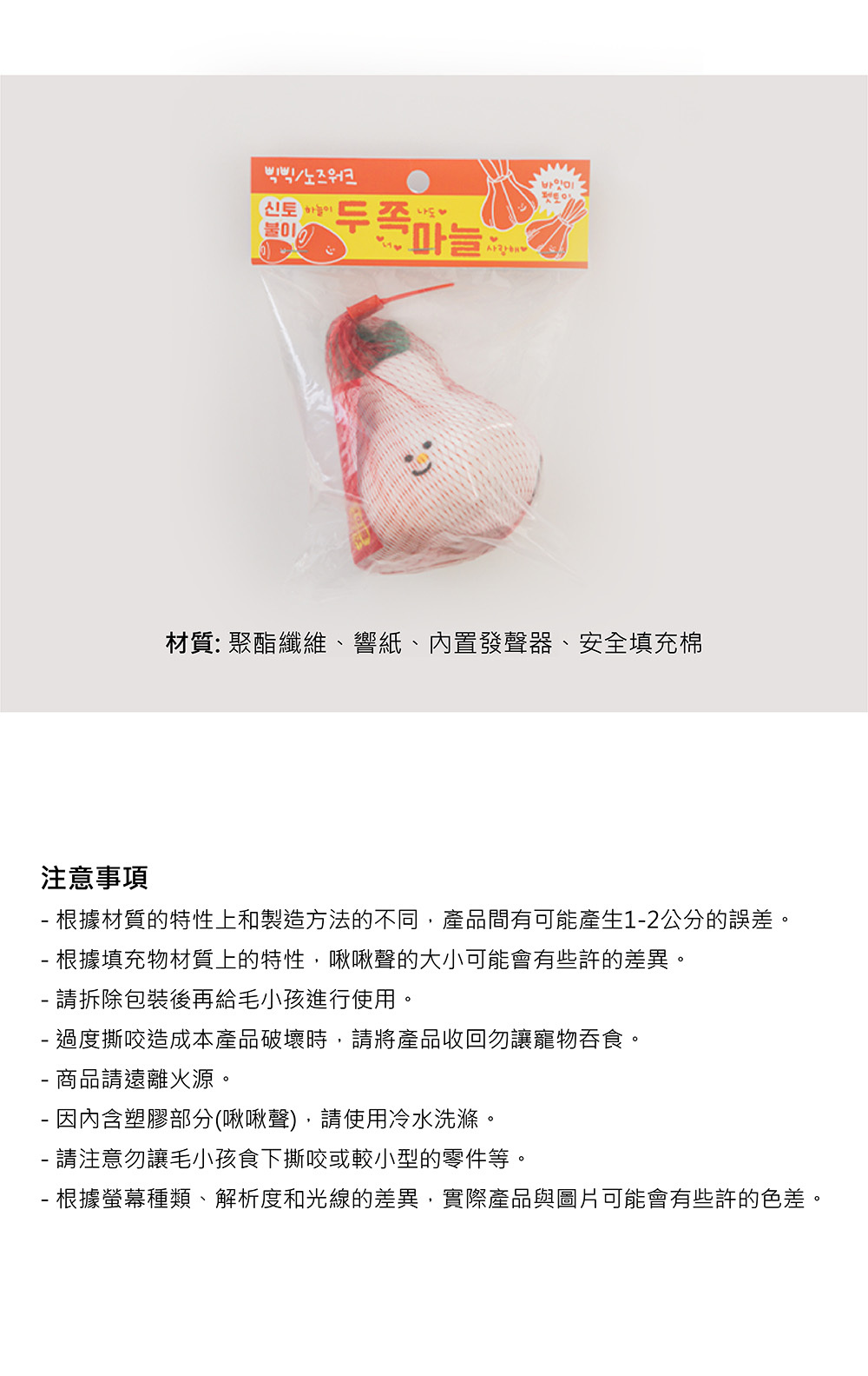 材質:聚酯纖維、響紙、內置發聲器、安全填充棉
