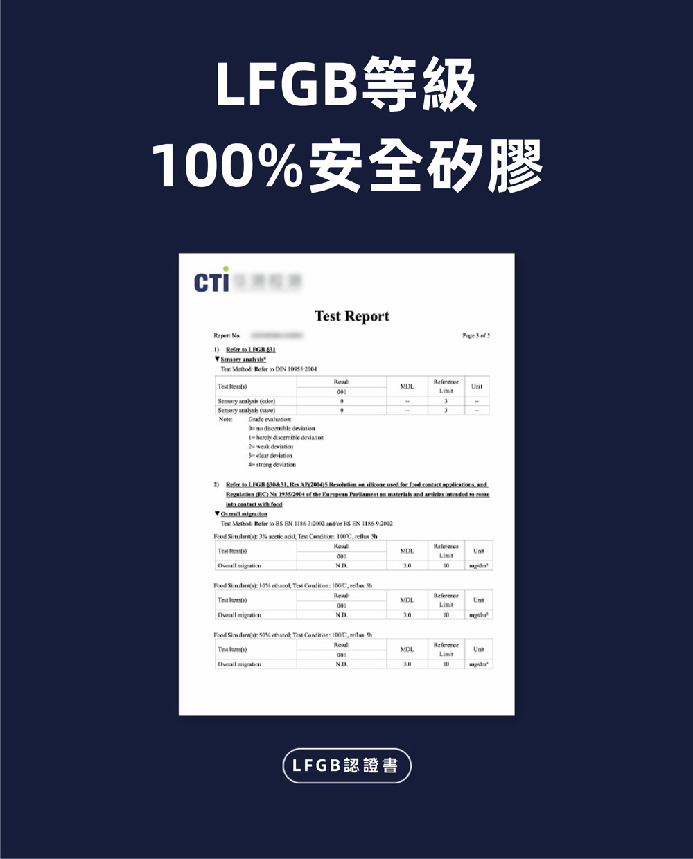 ● 使用LFBB等級的100%安全矽膠