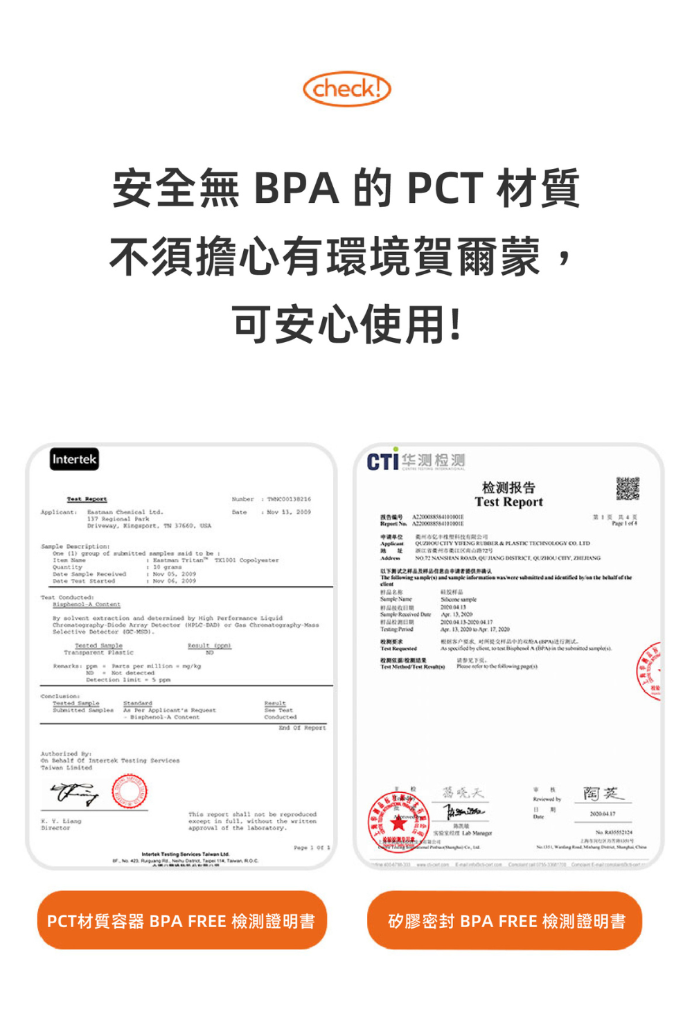 ● 通過無BPA安全檢測證明