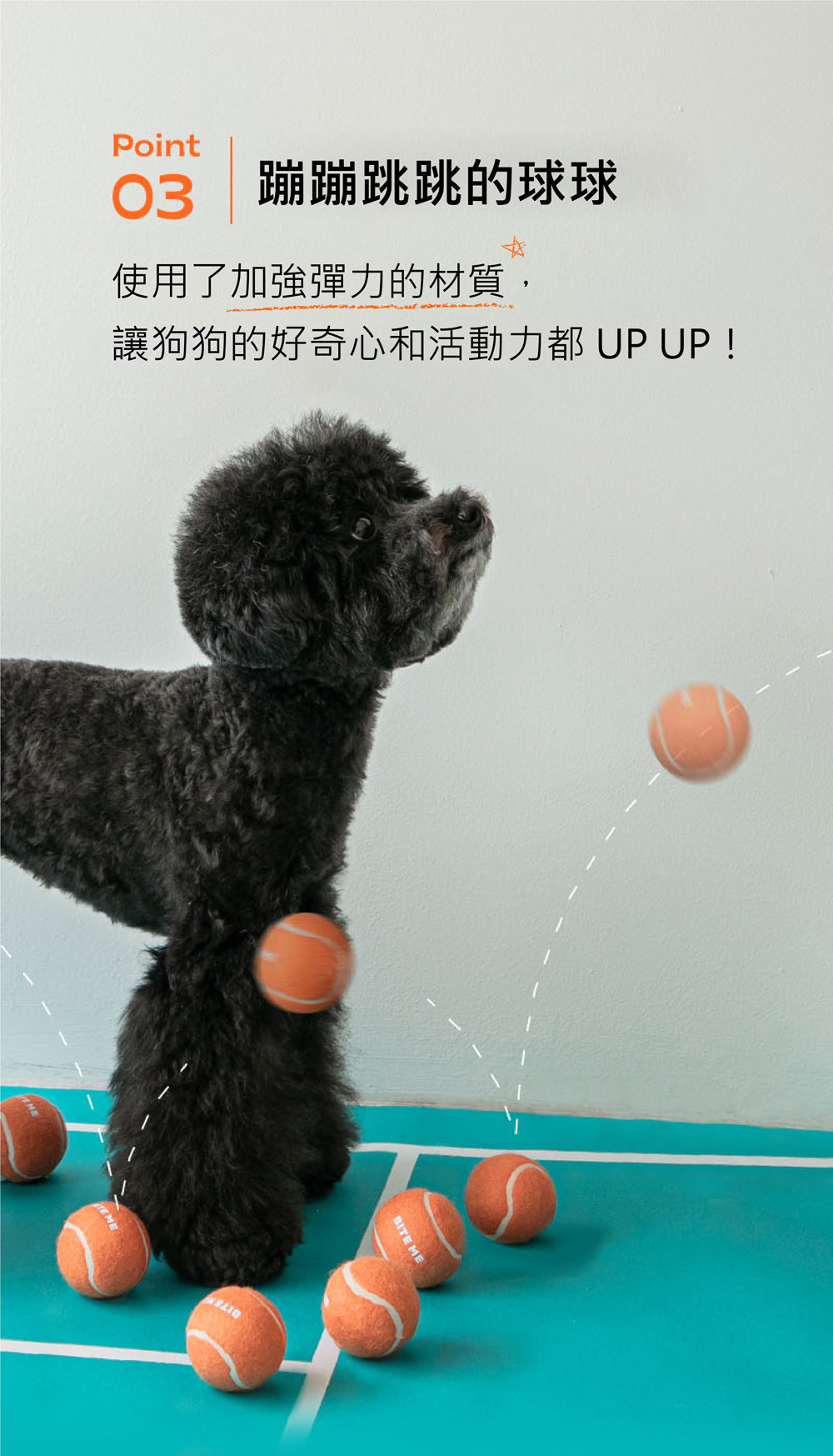 ● 蹦蹦跳跳的網球 使用加強彈力的材質