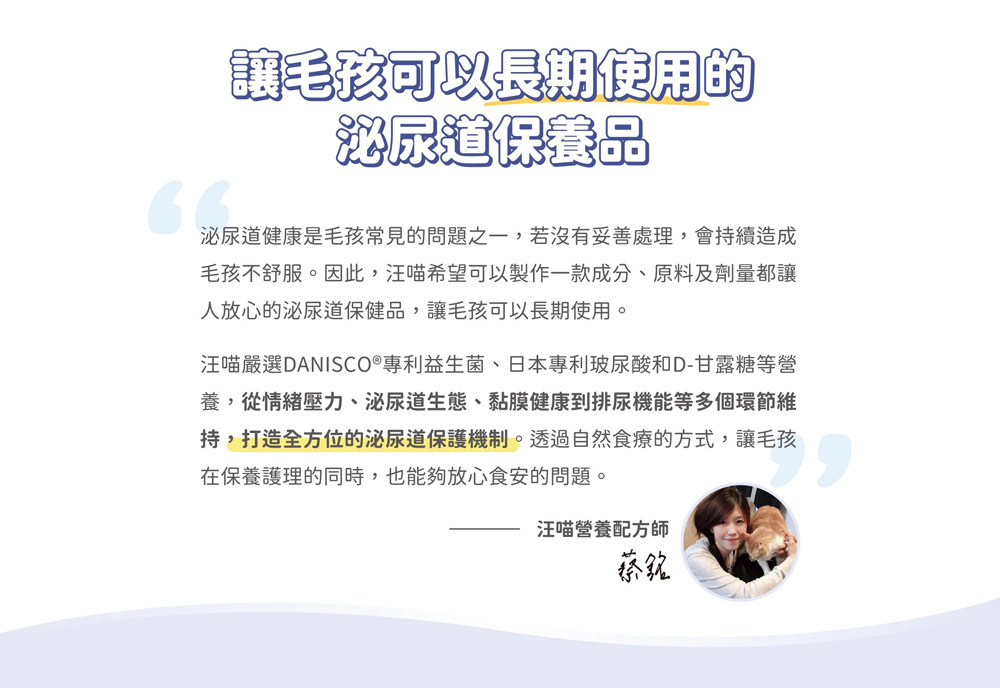● 建議平常多補充水分,輔以保健品補充泌尿道所需營養