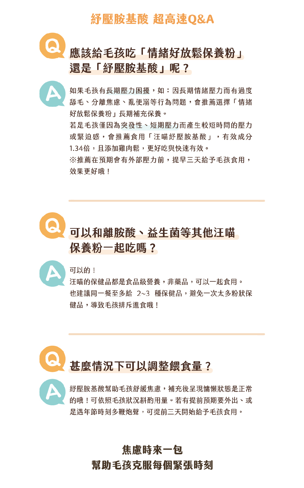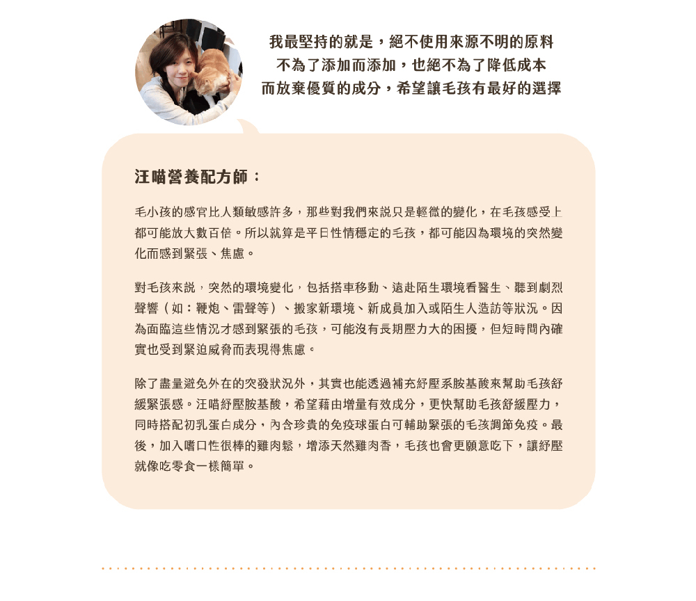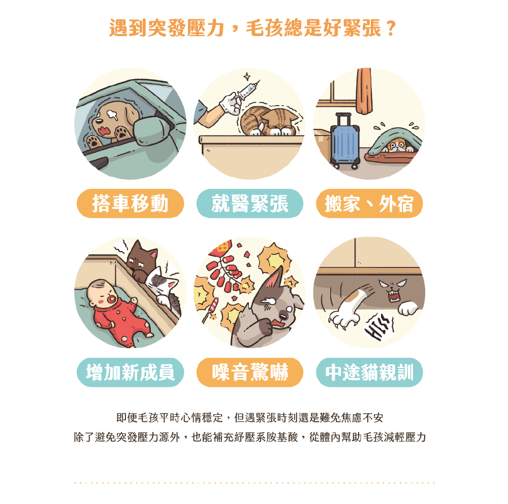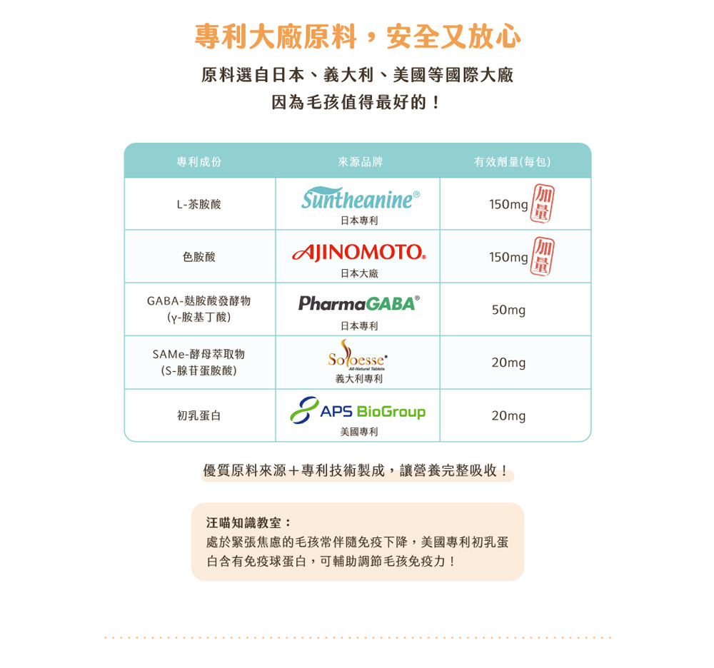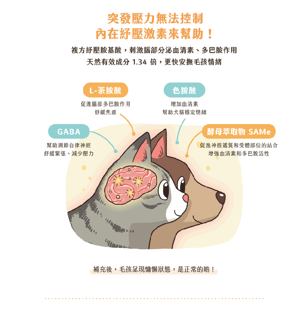 ● 嚴選國際專利成分,加強有效劑量,安撫毛孩更快更明顯