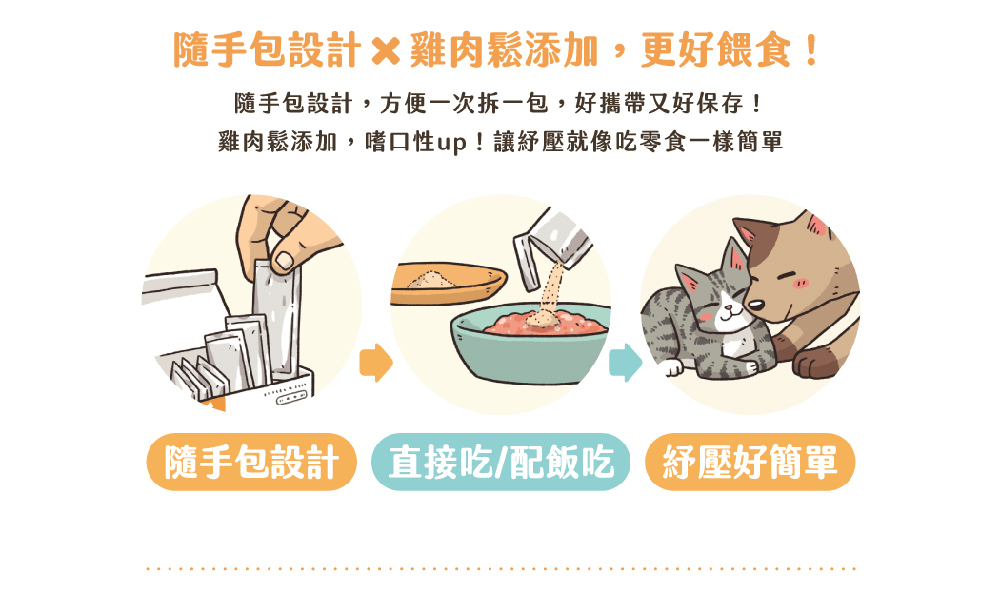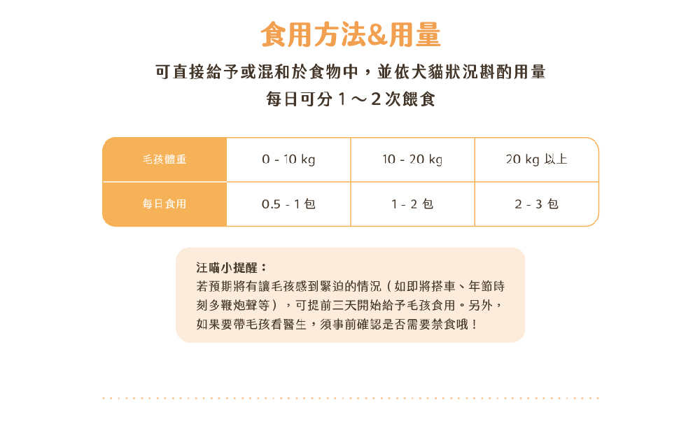 ● 特別適合毛孩外出就醫、搭車移動前食用