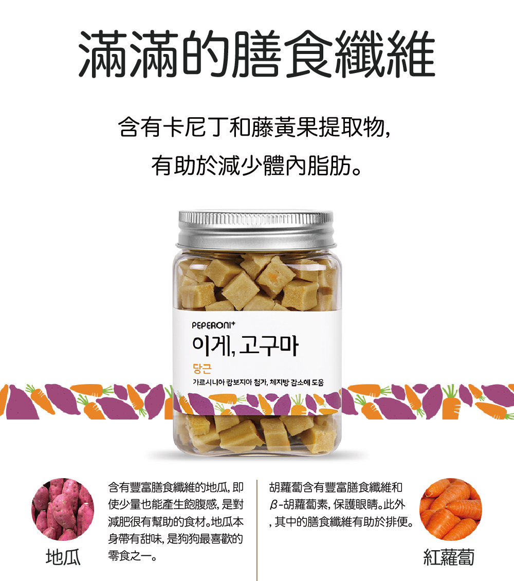 ● 膳食纖維&胡蘿蔔素,助於排便以及保護眼睛。