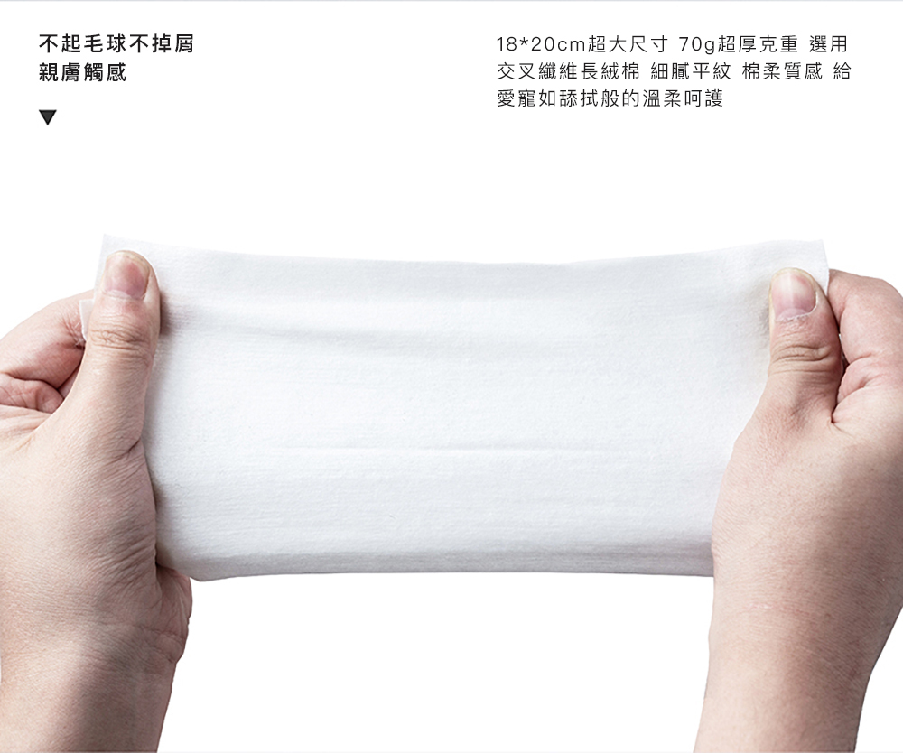 ● 可擦拭污垢 軟化角質 撫平寵物毛髮