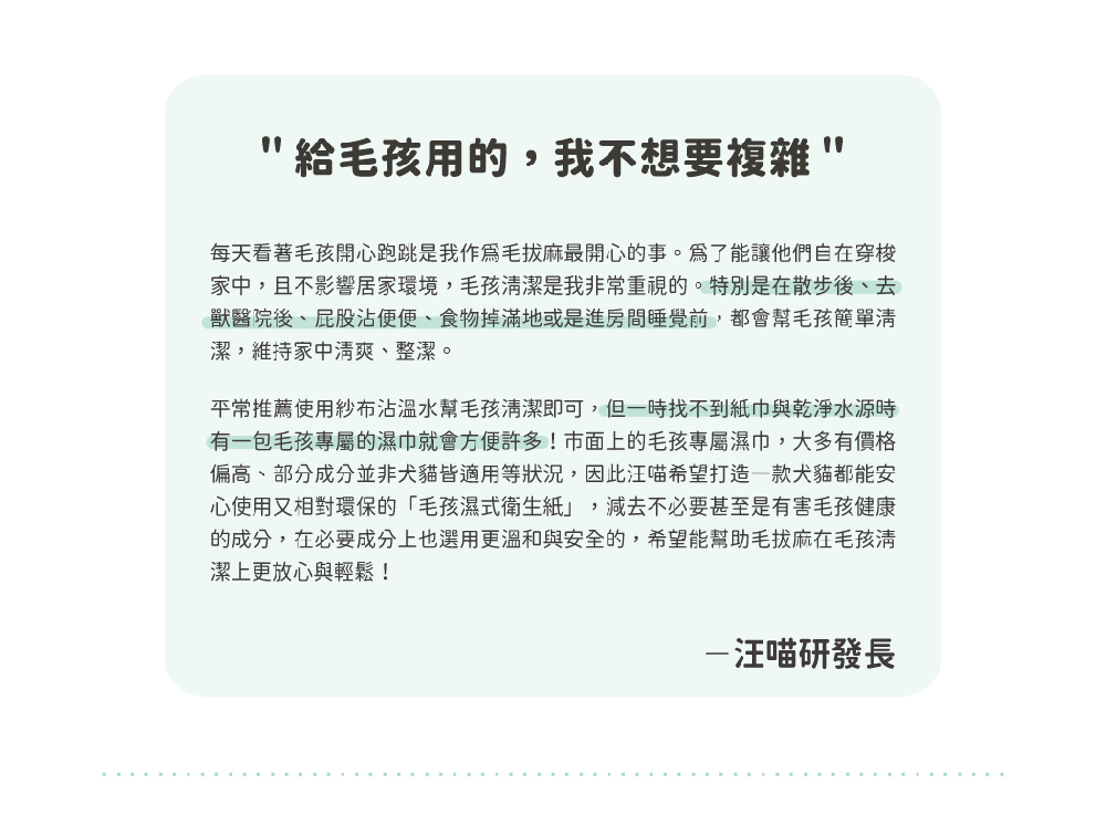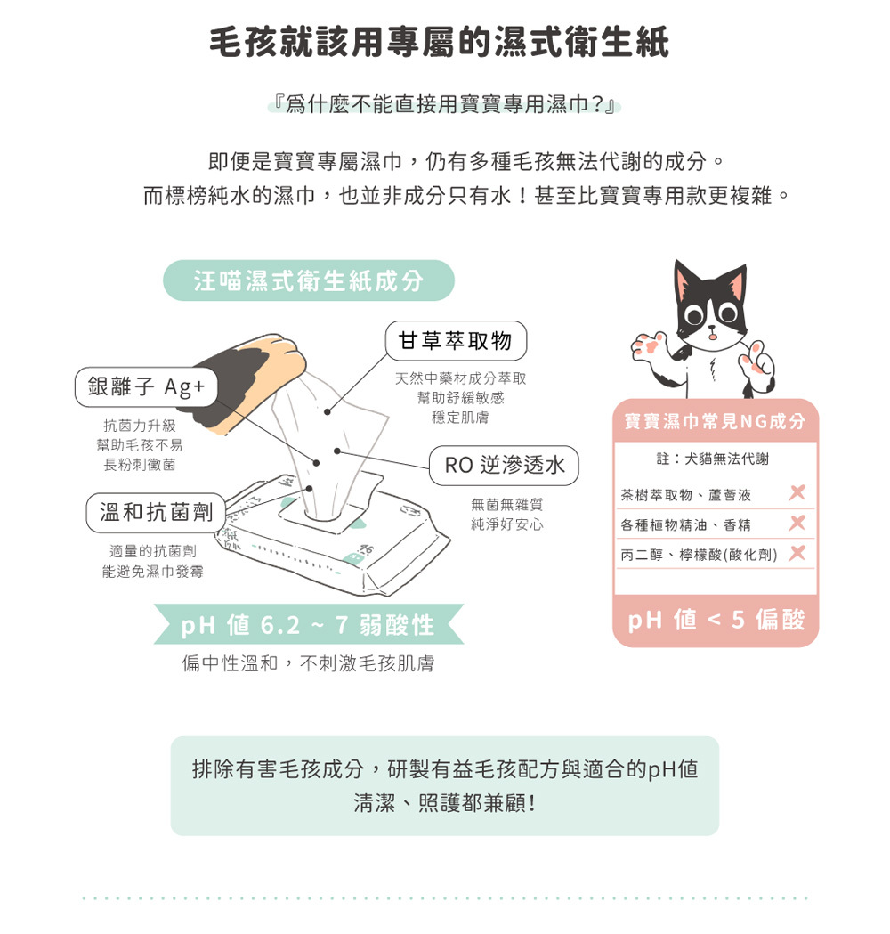 ● 毛孩專屬濕式衛生紙,好撕、可沖馬桶